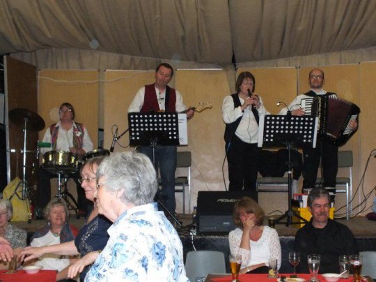 The 25th Anniversary DanceOn Friday 30th March 2012 Heatherdene Folk Dance Club celebrated it's 25th birthday with a Silver Anniversary Ceilidh at Pool Village Hall. The caller was Chris Turner and music was provided by the Philip Rowe Big Band. There a video clip on Youtube thanks to John Cheesborough and here are some pictures of the event.