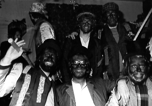 Traditional folk music, dance and customs - Harrogate, North Yorkshire - Chas Marshall's WebsiteTHE RETURN OF THE BLUE STOTSAn aspect of traditional drama in YorkshireBy Stuart RankinBased on research by Stuart Rankin and Chas MarshallThe geographical county of Yorkshire has one of the richest and most varied traditions of folk drama in Britain. No other area of comparable size can show so diverse a heritage of differing performances, times of the year celebrated or costume worn; yet the county boundary itself seems to have had little significance, for records of particular customs ebb and flow between adjacent counties. Yorkshire was also a major centre for the publication of chapbooks, the texts of which undoubtedly formed the basis for many "Mummers" performances noted in the 19th century much further afield than the county itself. William Walker of Otley might perhaps be described as the "Brand Leader" in this field, judging by the several surviving titles and editions, including "The Peace Egg" and "Walkers' New Mommer or the Wasail Cup". Both these texts clearly have traditional roots but have been heavily elaborated in early Victorian style. Other Yorkshire chapbook publishers producing play texts worked in Leeds, Bradford and Sheffield, which implies a widespread and substantial demand from the populations of industrial towns, recently moved from rural areas. Later these little booklets came to be sold and even used in country districts. This suggests a level of literacy among the working population at the time of publication (ca. 1840 onwards) which was certainly not present in one particular group of contemporary workers - The Railwaymen - a substantial proportion of whom, even in the mid 1850's had to have rules and regulations read to them annually. Nevertheless, these published texts somehow formed the basis for many recorded performances in cities, towns and villages, even if subsequent transmission, as we shall see, reverted to oral tradition. In the Leeds and Bradford areas, plays based on these printed texts were performed by "Mummers" at Christmas time, but further west, along the border with Lancashire and the Lake counties, "Mummers" were known as "Peace Eggers" or "Pace Eggers" and performed similar plays at Easter. Easter "Pace Eggers" could once be found from the mill towns of the Pennine watershed to the villagers of Swaledale giving performances virtually identical to those found in the North West - even including the Pace Egg Song at the beginning or end. In South Yorkshire, many Christmas performances were similar to the short "Old Tup" plays of Derbyshire. While on the border with Lincolnshire and in the Southern part of the East Riding, the usual combat/death/revival type play shared a post Christmas to Epiphany time of performance with the Wooing type Plough Plays of the East Midlands. Moving into North Yorkshire, the Longsword Dances (also usually performed after Christmas) were sometimes an integral part of complex plays, often showing clear literary influences which must have been imposed locally by some educated person. Along the border with County Durham, guisers performed at Christmas time. There were also some oddities, like the "Poor Old 'Oss" Christmas performances at Richmond with parallels to be found in Cheshire, Kent and South Yorkshire, and a small group of "Tar Barrel" plays in the vicinity of Pickering. These were performed before November 5th, to raise money for the purchase of pitch to be burned on Bonfire night. In those parts of Yorkshire where post-Christmas performances were the norm, they became inextricably linked with, and then replaced, a much older and better documented custom - "Plough Stotting". There are records of this throughout Eastern England back to the Middle Ages, when, on the first Monday after Epiphany, ploughs were blessed in church prior to the farming activities associated with the Spring sowing of crops. In many arable farming districts of Yorkshire this was preceded by the plough being dragged round the village by a gang of young farm workers, dressed in strange costumes, who took the place of the "Stotts" or bullocks normally used as draught animals. In the early 1800s they are reported in several Yorkshire locations as performing sword or other dances, details of which are now lost, as well as indulging in various types of rowdyism, exhorting money by non-too good-natured menaces! In mediaeval times, money collected by the "Stotts" paid for a "Plough Light" to burn in the church throughout the year. The reformation more or less stamped out that custom. In the materialistic 19th century money collected was spent on beer and a good feed; the proportions of expenditure on these items varying according to the predilections of the individual teams. In North Yorkshire dialect, "Plough" was pronounced "Pleaf", "Pleaugh" or "Plew". By the late 19th century "Plough Stots" had become corrupted via "Blew Stots" to "Blue Stots". The plough itself had entirely disappeared from the custom, and for a period of at least 70 years (c. 1870 to c. 1940) teams of young men or boys, calling themselves "Blue Stots" and usually with blackened faces, are reported performing a distinctive version of the combat/death/revival play. These performances were usually between Christmas and Plough Monday, and seem to have been confined to the arable lands of Yorkshire, running in a band between Tees and Humber. Teams using the name "Blue Stots" are recorded at Thirsk, Coxwold, Kirkby Malzeard, Ripon, Skelton-on-Ure, Boroughbridge, Raskelf, Sherriff Hutton, Marton-cum-Grafton, Clifford (where the custom was later called "Niggering"), Thorner, the vicinity of Selby, Snaith and Bubwith. Where details have survived, these performances share some of the following distinctive features: 1. Post Christmas time of performance. 2. Face blackening by performers as a disguise. (One team, confused by the name, stained theirs blue! Red-faced performers are rep